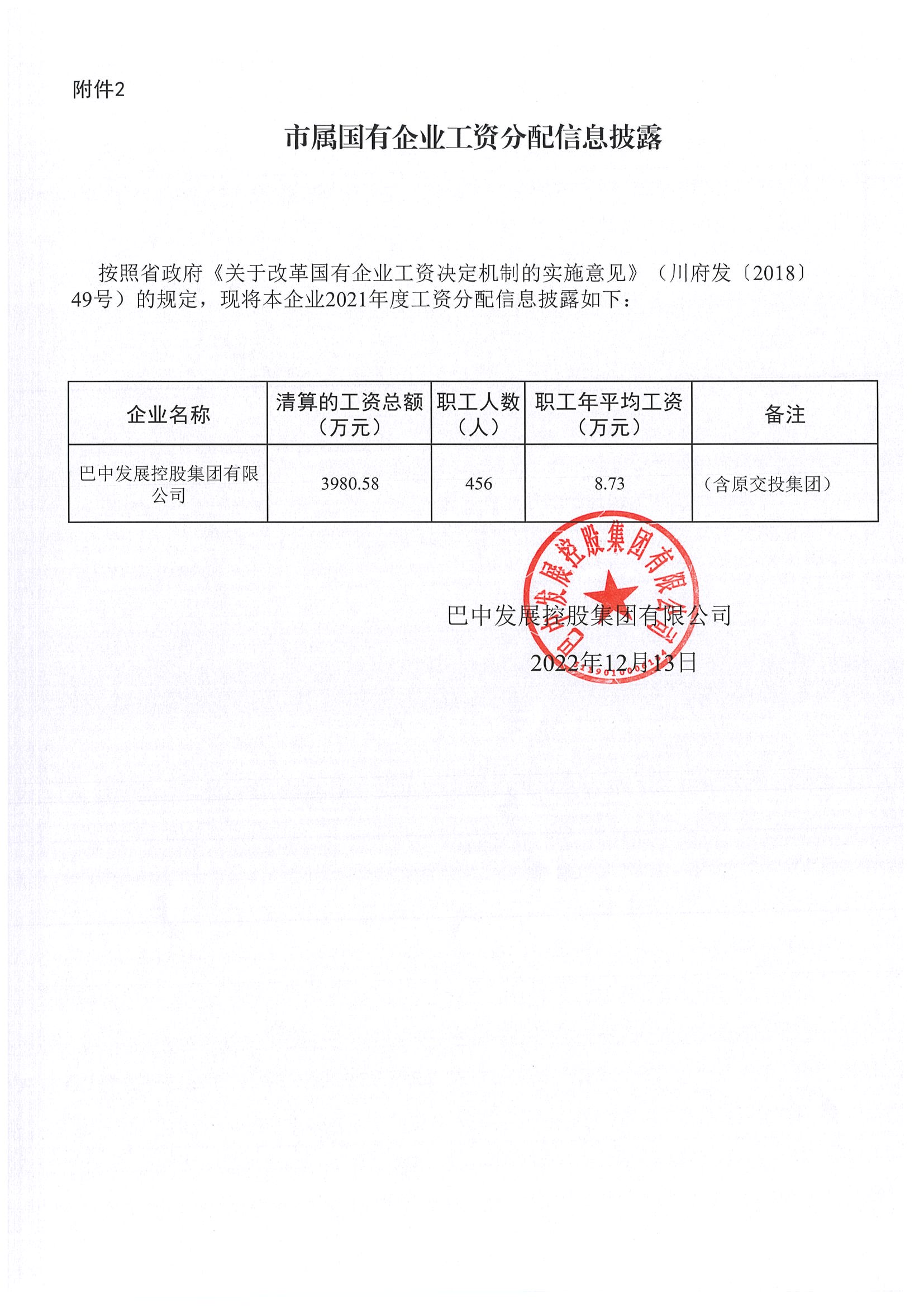 市屬國(guó)有企業(yè)工資分配信息披露