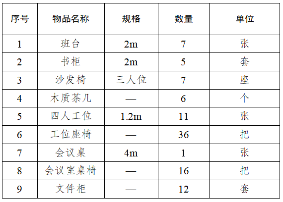 按配置清單采購(gòu)辦公家具一批(詳見下表):
