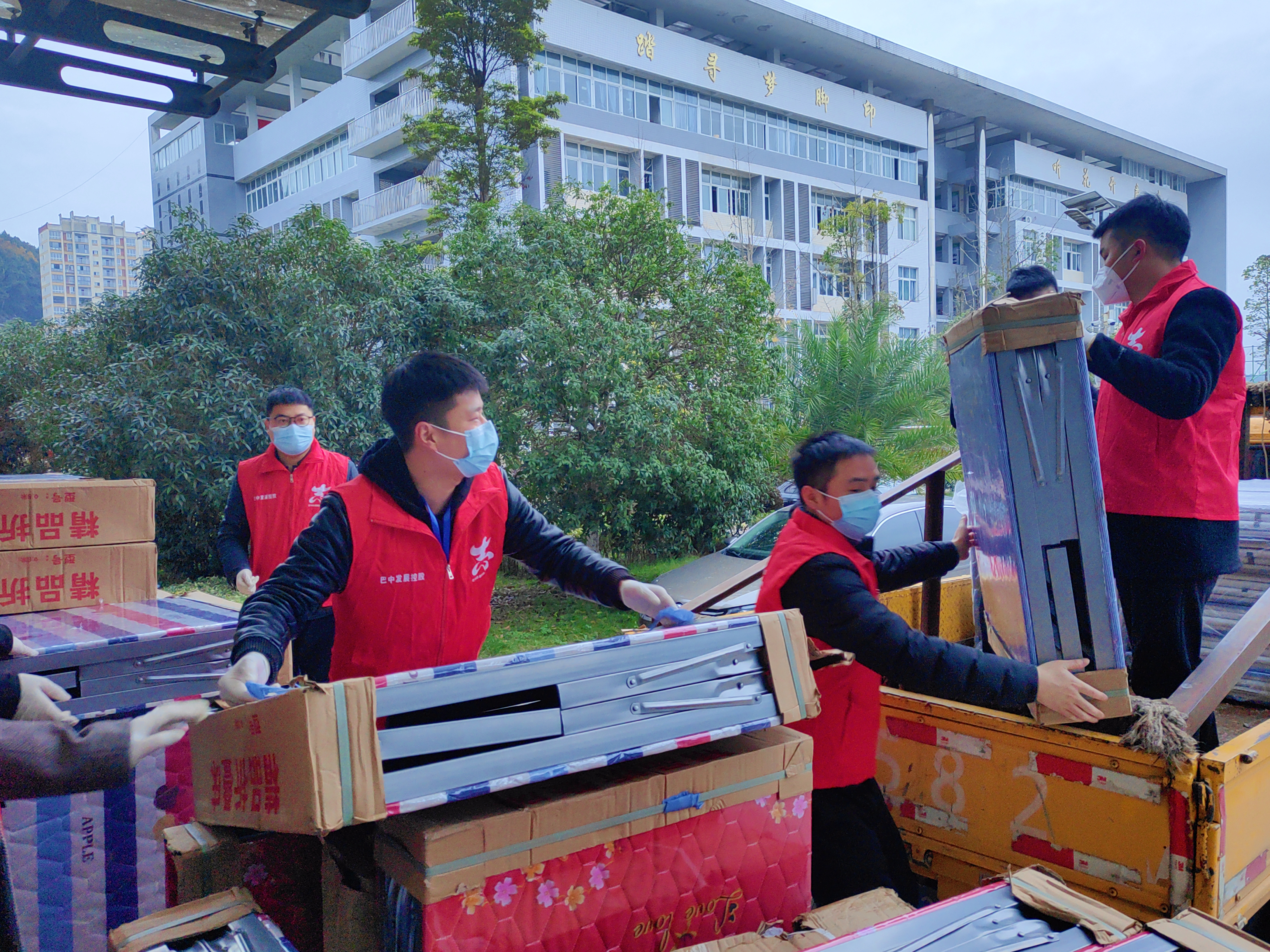 集團(tuán)黨委副書(shū)記、總經(jīng)理沈鵬帶隊(duì)到巴中中學(xué)、巴中高級(jí)中學(xué)以及巴中五中發(fā)放包括行軍床、醫(yī)用口罩、米面油等在內(nèi)的近5萬(wàn)元抗疫物資。