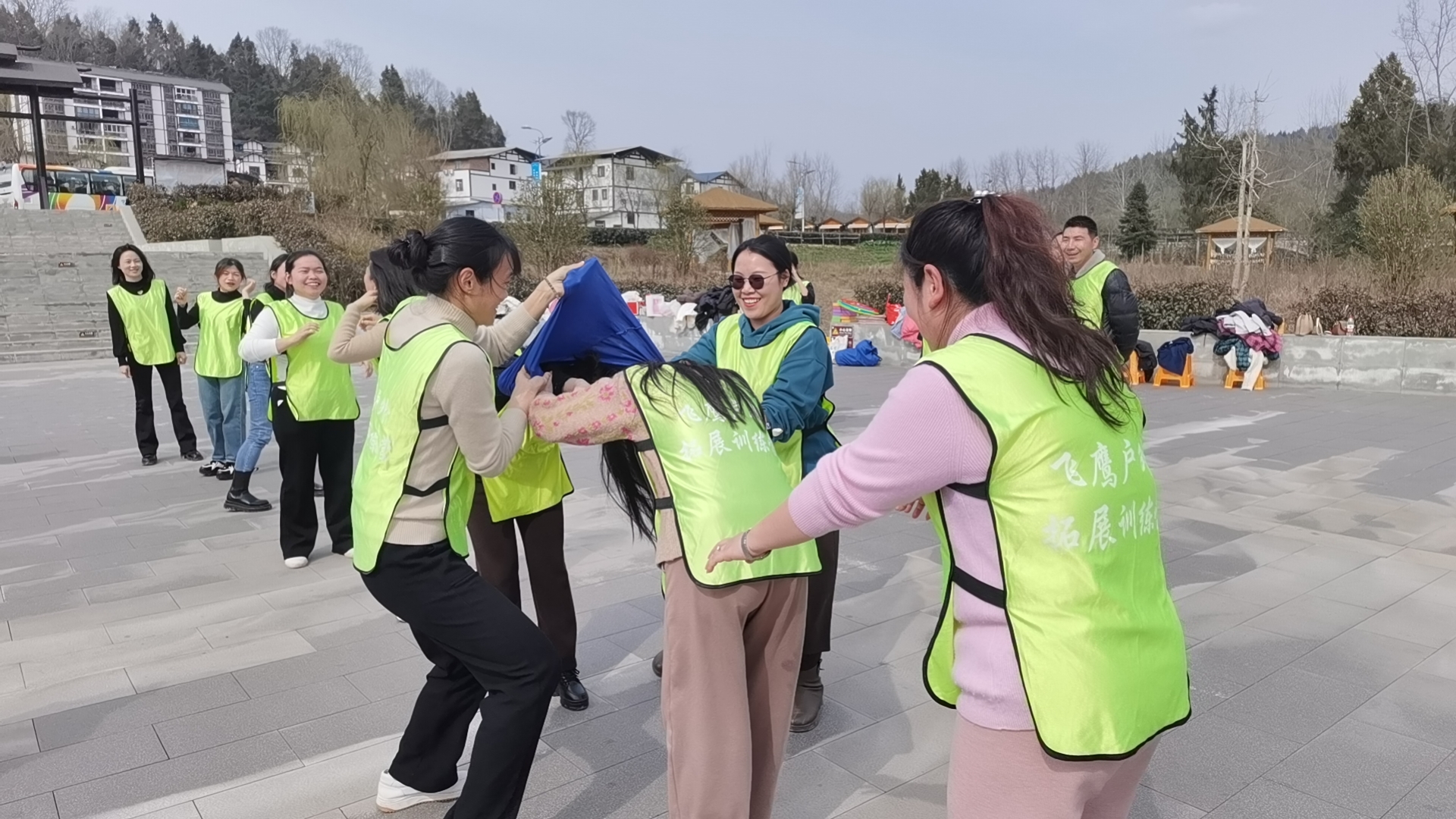 下午,女職工們在駟馬水鄉(xiāng)碼頭廣場開展了團建活動?;顒娱_始前,教官按照報數(shù)的順序,將全體參與人員隨機分成了紅、黃、綠3個隊,隊員們通過進(jìn)行輪流交換揉肩、捶背等放松活動打破隔閡、消除尷尬,營造了歡快活潑的團隊氛圍。