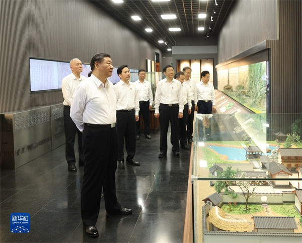 7月29日,中共中央總書(shū)記、國(guó)家主席、中央軍委主席習(xí)近平在四川考察結(jié)束返京途中,來(lái)到陜西省漢中市考察。這是習(xí)近平參觀漢中市博物館有關(guān)歷史文物展陳。