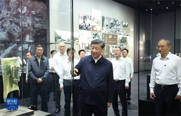 位于德陽(yáng)市廣漢市西北鴨子河南岸的三星堆遺址,代表了數(shù)千年前的古蜀文明面貌和發(fā)展水平,是同時(shí)期長(zhǎng)江流域文化內(nèi)涵最豐富、面積最大的都城遺址。26日下午,習(xí)近平來(lái)到三星堆博物館新館,參觀“世紀(jì)逐夢(mèng)”、“巍然王都”、“天地人神”等展陳,了解三星堆遺址發(fā)掘歷程和古蜀文明成果。在三星堆博物館文物保護(hù)與修復(fù)館,習(xí)近平走進(jìn)文保修復(fù)工作區(qū),仔細(xì)察看文物保護(hù)修復(fù)工作流程細(xì)節(jié)和最新技術(shù),同現(xiàn)場(chǎng)工作人員親切交流。習(xí)近平指出,三星堆遺址考古成果在世界上是叫得響的,展現(xiàn)了四千多年前的文明成果,為中華文明多元一體、古蜀文明與中原文明相互影響等提供了更為有力的考古實(shí)證。文物保護(hù)修復(fù)是一項(xiàng)長(zhǎng)期任務(wù),要加大國(guó)家支持力度,加強(qiáng)人才隊(duì)伍建設(shè),發(fā)揚(yáng)嚴(yán)謹(jǐn)細(xì)致的工匠精神,一件一件來(lái),久久為功,做出更大成績(jī)。習(xí)近平代表黨中央,對(duì)三星堆博物館新館的落成使用表示熱烈祝賀,向廣大考古工作者表示衷心感謝和崇高敬意!