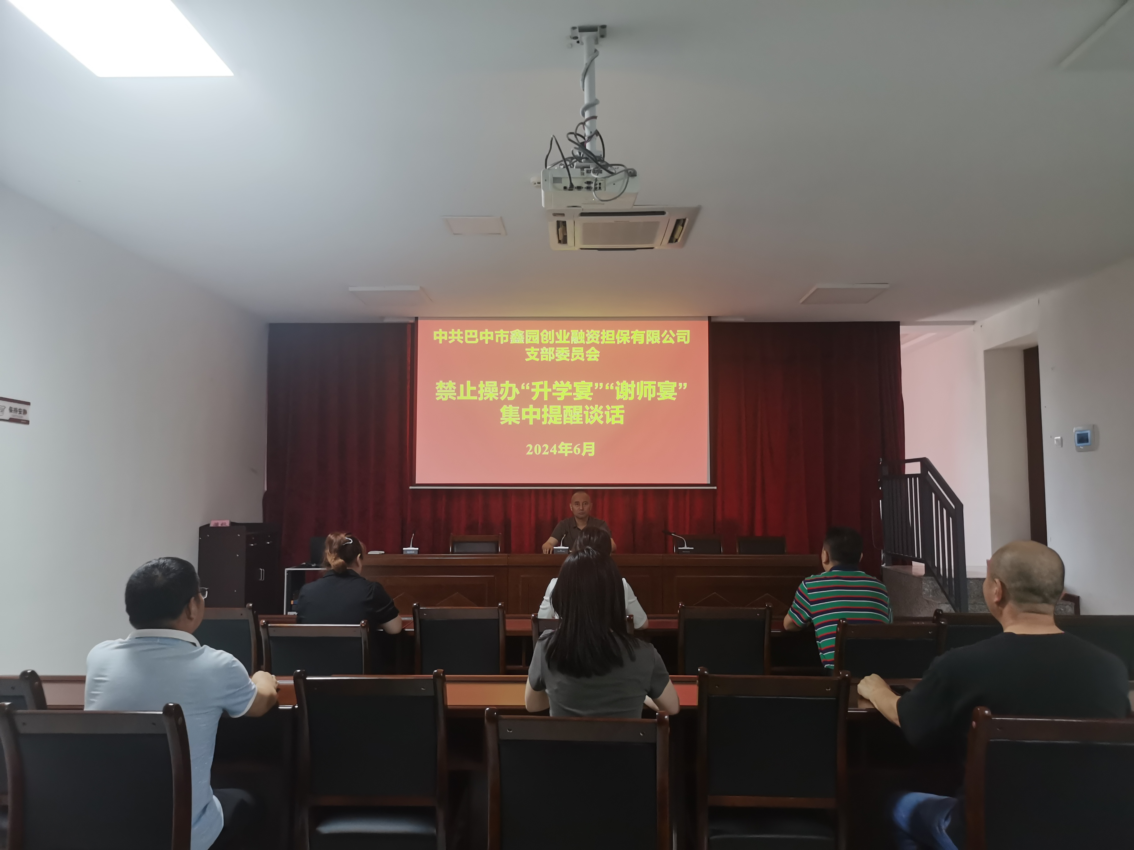 為認(rèn)真貫徹落實中央八項規(guī)定、省委十項規(guī)定和市委九項規(guī)定精神,扎實開展好黨紀(jì)學(xué)習(xí)教育,狠剎違規(guī)操辦酒席不正之風(fēng),6月20日,市鑫園創(chuàng)業(yè)擔(dān)保公司黨支部書記、董事長吳德映對今年有子女畢業(yè)升學(xué)的職工開展了集中提醒談話。